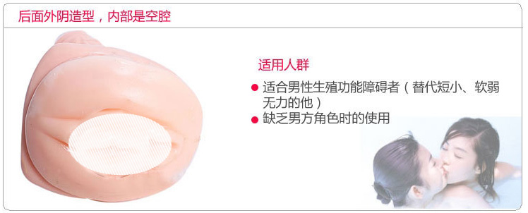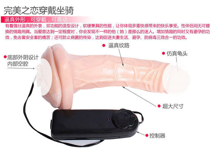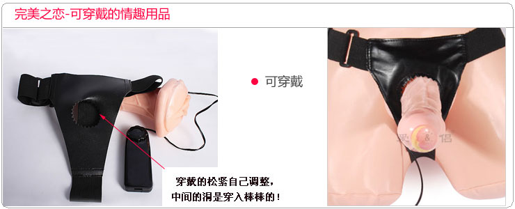完美之恋情趣用品,适合男性生殖功能障碍者(替代短小、软弱无力的他)、缺乏男方角色时的使用。后面为一外阴造形,内部是空腔,能够放进疲软的它;前部有一跳蛋,男女双方都可以得到震动慰抚效果。男方穿在身上,具有自慰的神奇功能。