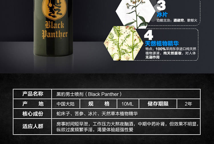产品名称:天然萃取 无麻醉延时 黑豹1代